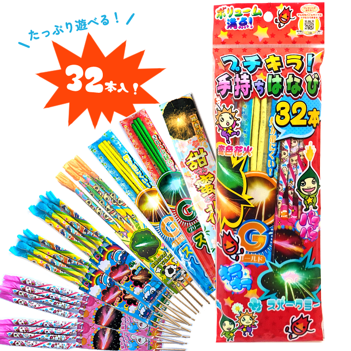 【花火セット 景品向け はなび イベント お祭り 子供会 景品 配布 販促 ノベルティ ビンゴ】プチキラ 手持ちはなび32本 ※数量限定