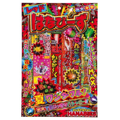 手持ち花火と線香花火だけの花火セット。目を引く鮮やかなパッケージが特長です。