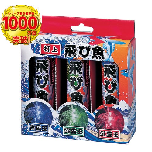 イナズマのような光が夜空を四方八方に走ります。色鮮やかな紅・緑・藍の3色セット。ロングセラー商品です。