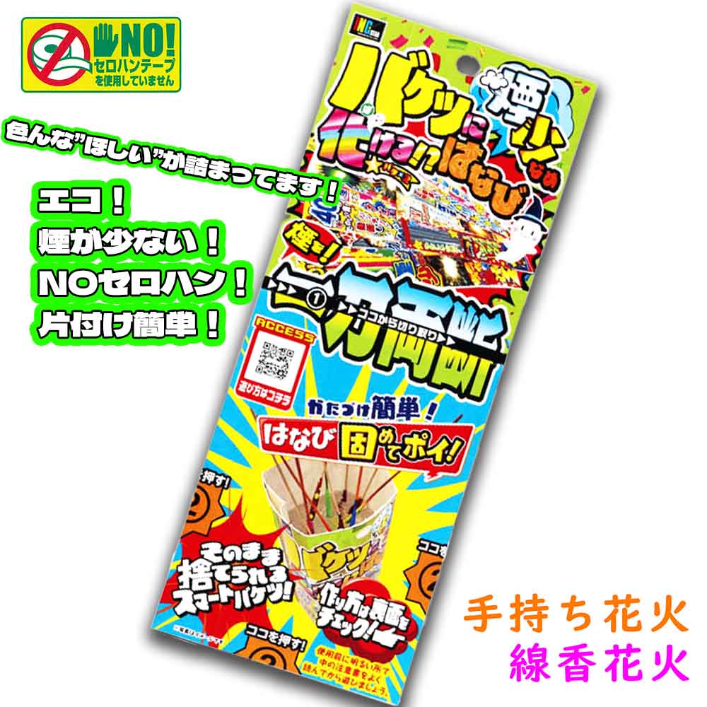 【 花火セット 手持ち花火 線香花火 エコ 片付け 楽 お祭り 縁日 配布 ノベルティ ホテル 業務用 大量 】☆送料無料☆ バケバケはなび 煙少なめ