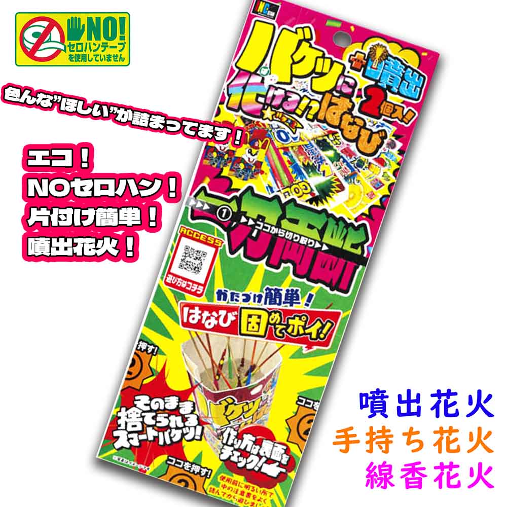 【 花火セット 噴出花火 手持ち花火 線香花火 エコ 片付け 楽 お祭り 縁日 配布 ノベルティ ホテル 業務用 大量 】☆送料無料☆ バケバケはなび 噴出プラス