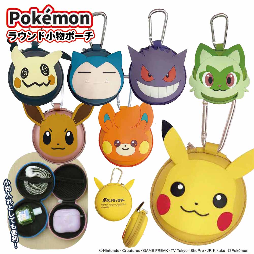 ポケモンラウンド小物ポーチ 全7種 ( ピカチュウ / ゲンガー / パモ / ニャオハ / カビゴン / イーブイ / ミミッキュ )