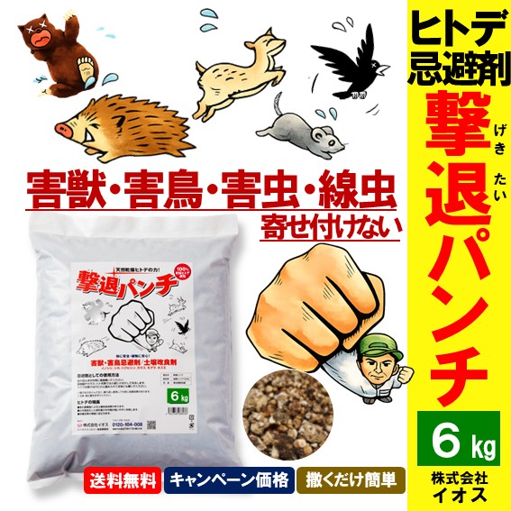 ヒトデ 忌避剤 撃退パンチ 6kg コブヒトデ 害獣 害鳥 害虫 対策 イノシシ シカ モグラ ハクビシン アライグマ タヌキ カラス ハト ネズミ カメムシ ムカデ