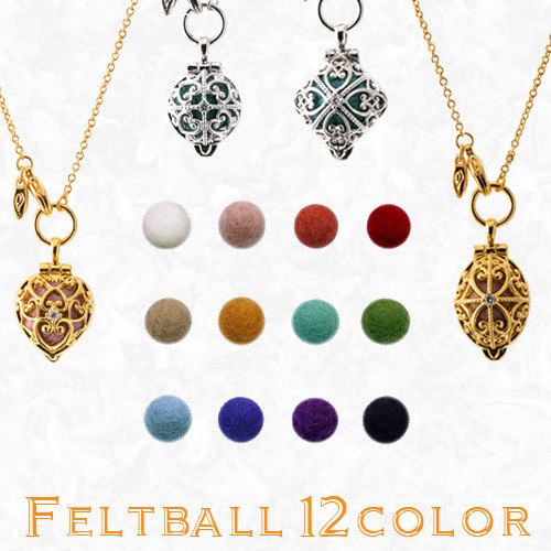 エポラージュアロマペンダントに使用できるフェルトボール12色セット。その日の気分によってお好みの色のフェルトボールを使いたい!アロマオイルの種類によって使い分けたいという方にぴったりな商品です。フェルトボールにお好みのアロマオイルを1-2滴たらして、エポラージュアロマペンダントトップ部分に入れていただくと胸元からふわっと香るアロマオイルの香りでリラックスできます。※こちらの商品はフェルトボールのみとなりますのでご注意ください。