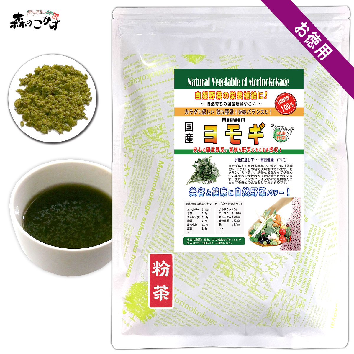 K1 国産 ヨモギ 粉末 (350g) 長野・徳島県産 よもぎ 蓬 (自然栽培・放射能検査済・残留農薬検査済) 北海道 沖縄 離島も無料配送 森のこかげ 売筋粉 国粉末