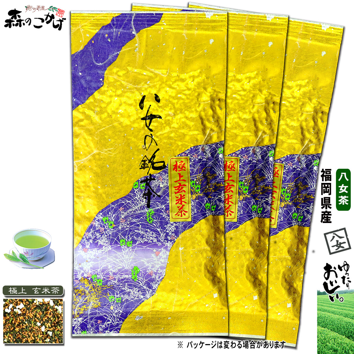 Y 極上 玄米茶 (100g×3個セット) 八女茶 福岡県産 日本茶 厳選の緑茶 国産 北海道 沖縄 離島も無料配送可 森のこかげ やめ茶