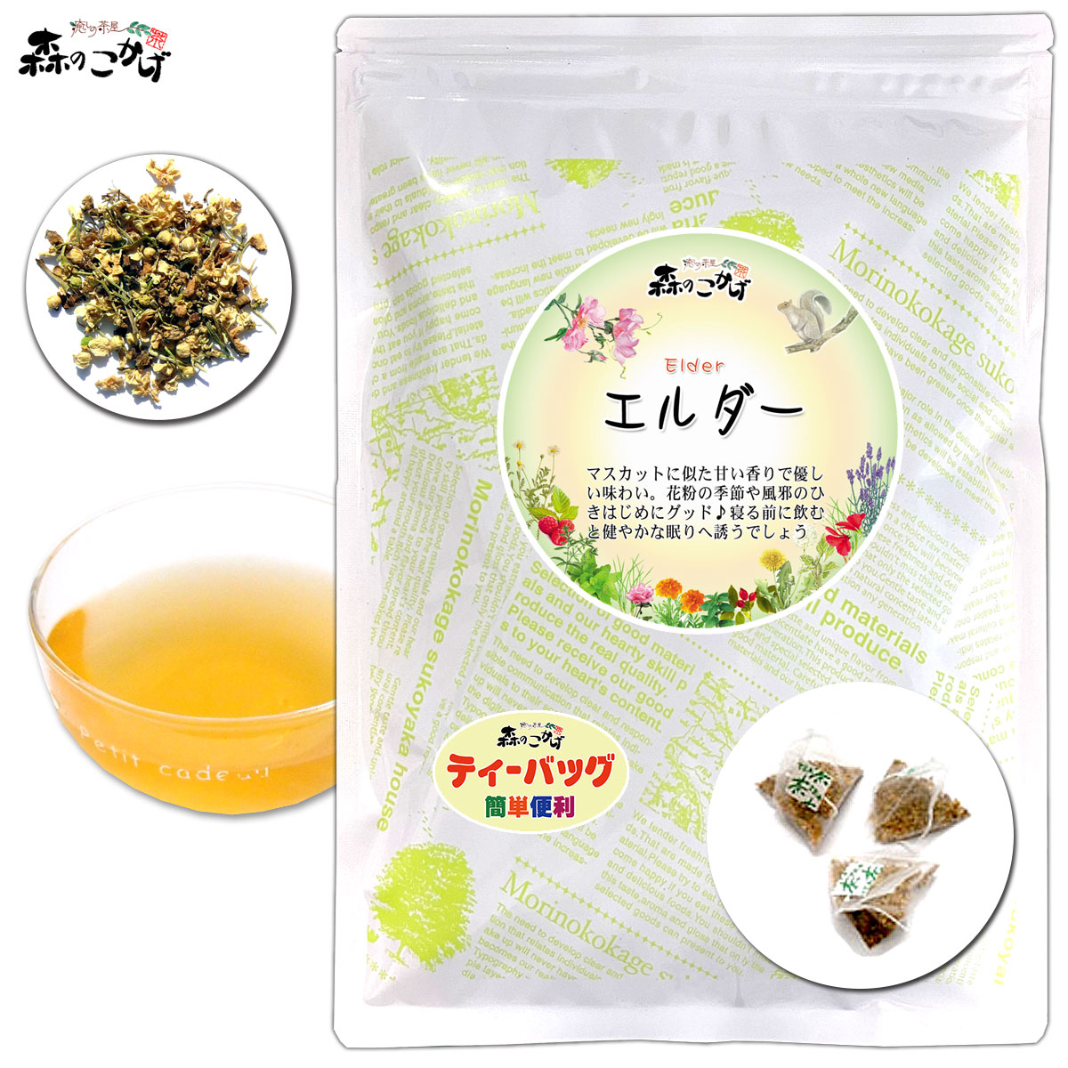 B エルダーティー (1.5g×20p) ティーバッグ コーディアル (残留農薬検査済) 北海道 沖縄 離島も無料配送可 森のこかげ ハ少T