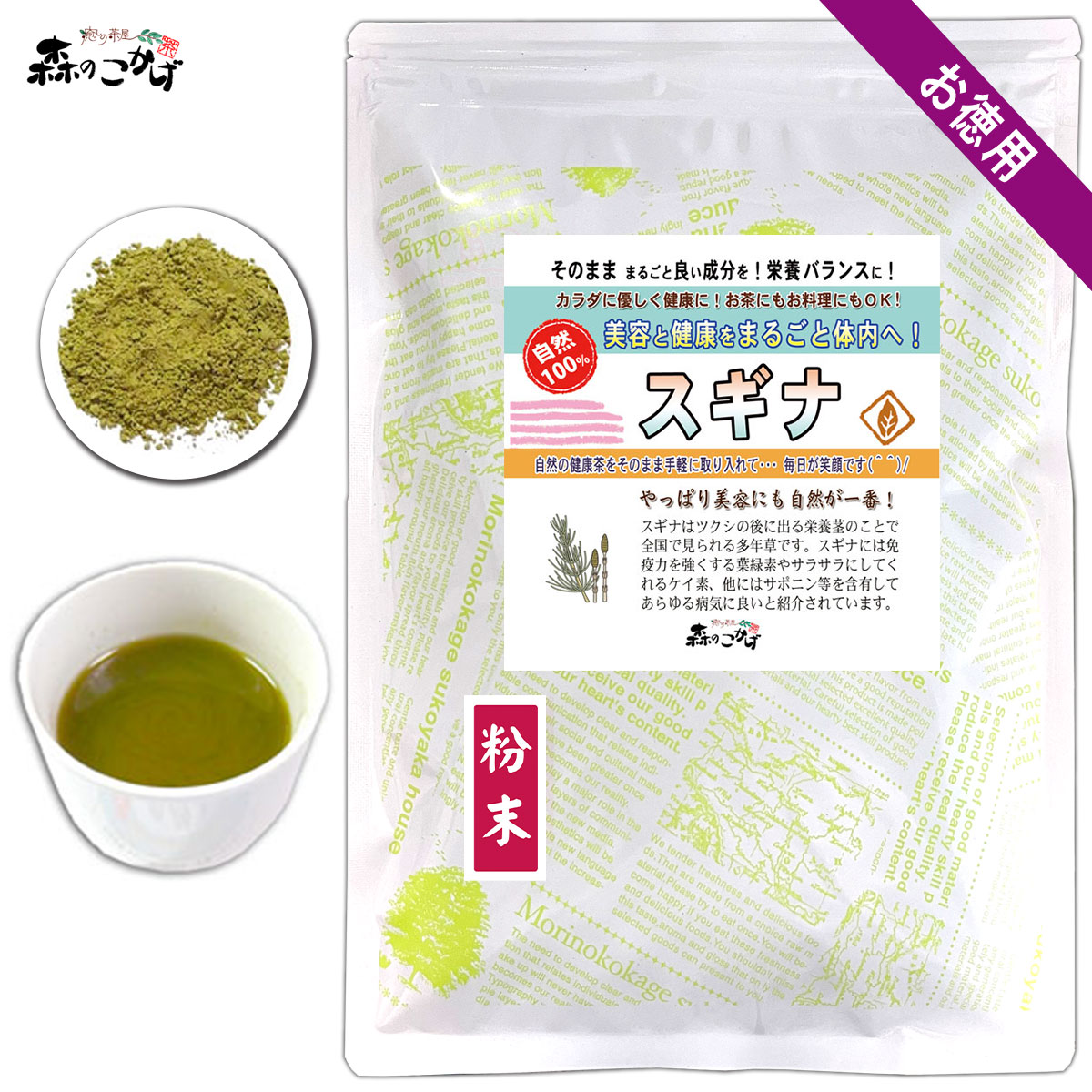 M スギナ 粉末 (300g) 杉菜 パウダー すぎな茶 (残留農薬検査済) 北海道 沖縄 離島も無料配送可 森のこかげ 売筋粉 徳粉末