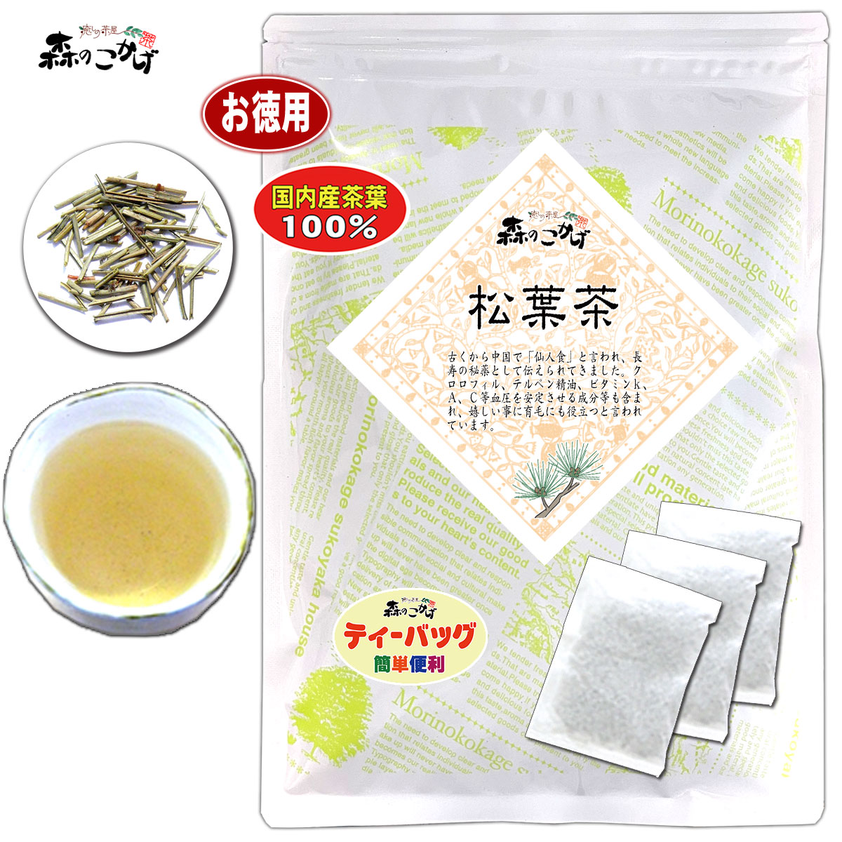 3 国産 松葉茶 (3g×50p) 赤松 徳島県産 焙煎茶 自然栽培 無農薬 まつば茶 (残留農薬検査済) 北海道 沖縄 離島も無料配送可 森のこかげ 売れ筋 健徳T