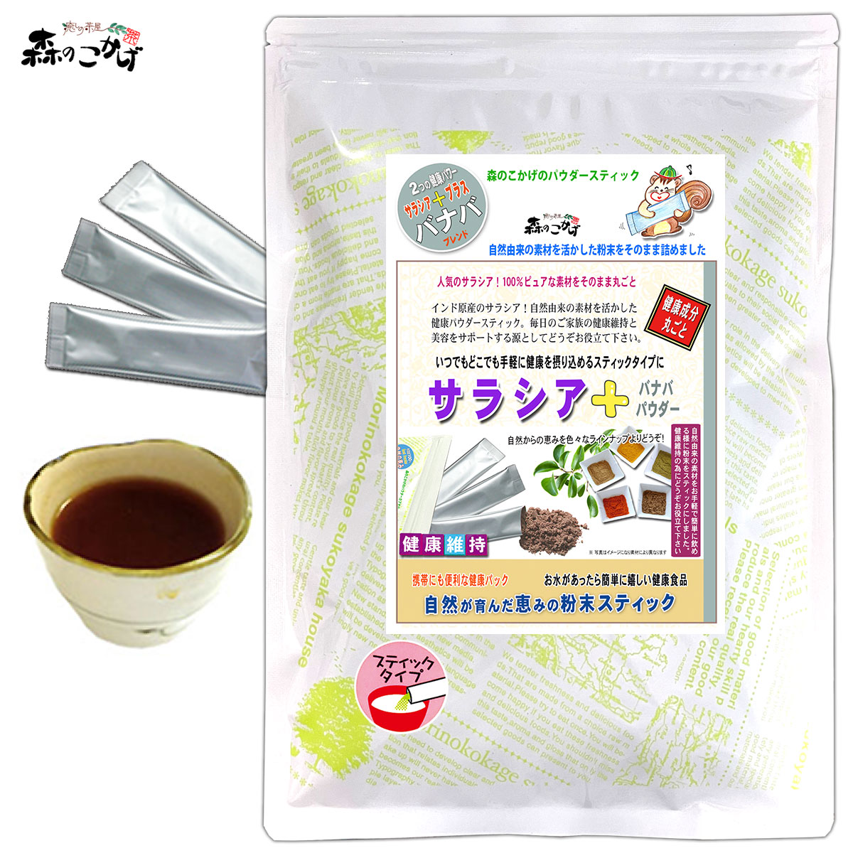 S1【森のこかげ】 サラシア+バナバ (粉末) スティック (2g×50p) 粉末 個包装 (残留農薬検査済み) 北海道 沖縄 離島も無料配送可 森のこかげ 少粉末