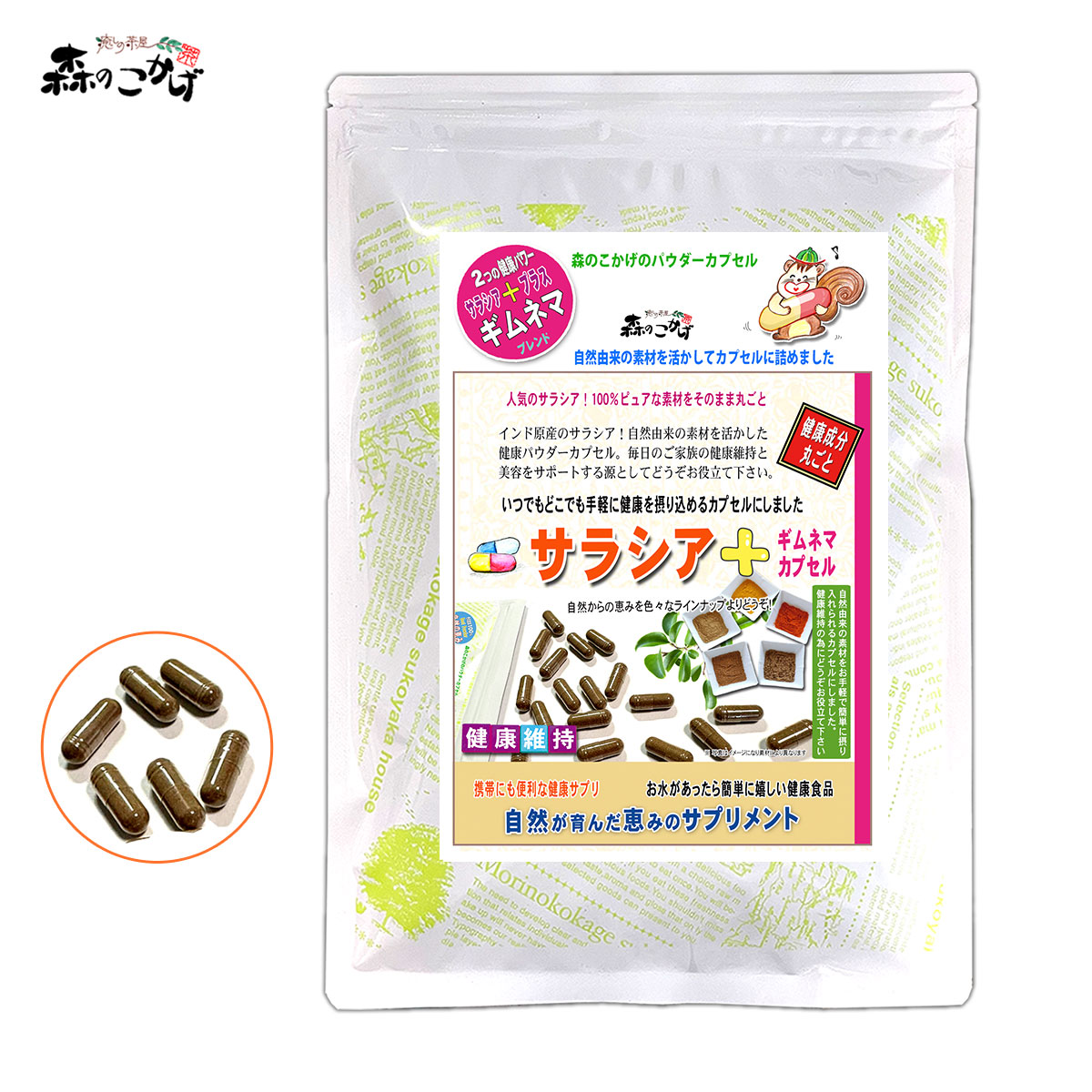 S1【森のこかげ】 サラシア+ギムネマ カプセル (320mg×120粒) 一日4粒目安1ヶ月分≪さらしあ≫ 北海道 沖縄 離島も無料配送可 森のこかげ 少粉末