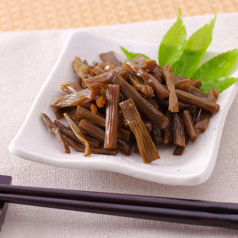原材料名:山蕗(国内産)醤油(小麦、大豆を含む)砂糖、鰹だし/調味料(アミノ酸等)
