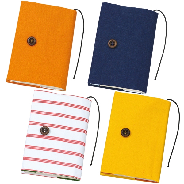 オリジナルのブックカバーを作りましょう!しおり紐付き、ボタン付けの練習も出来ます。