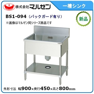 マルゼン 一槽シンク(バックガードあり) 型式:BS1-094 送料無料(メーカーより直送)