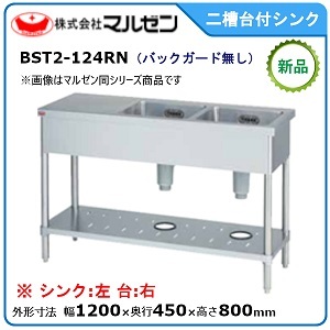 マルゼン 二槽台付シンク(バックガードなし、台:右) 型式:BST2-124RN 送料無料(メーカーより直送)