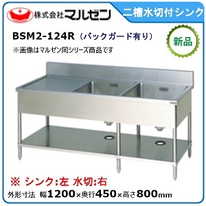 マルゼン 二槽水切付シンク(バックガードあり、水切:右) 型式:BSM2-124R 送料無料(メーカーより直送)