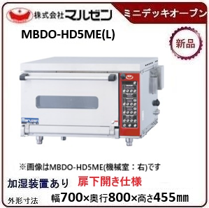 マルゼン ベーカーシェフ ミニ・デッキオーブン 型式:MBDO-HD5ME(L) ★デラックスタイプ(炉床石板・加湿装置あり・スリップピール付属)☆扉下開き仕様寸法:幅700mm 奥行800mm 高さ455mm送料:無料 (メーカーより)直送保証:メーカー保証付