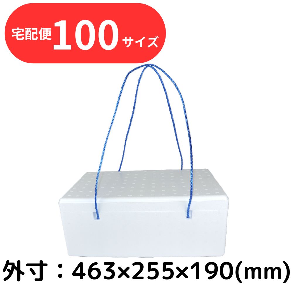 外寸:長さ463×幅255×高さ190(mm) 宅配:91サイズ 内寸:長さ420×幅200×高さ145(mm) 容量:12.2L 発泡倍率:50倍相当 白色の箱です。