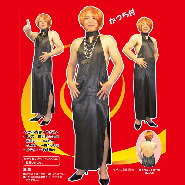 サイズ/ドレス=着丈約140cm・首周り約48cmまで・胸囲約100cmまで、かつら=頭囲約58cmまで