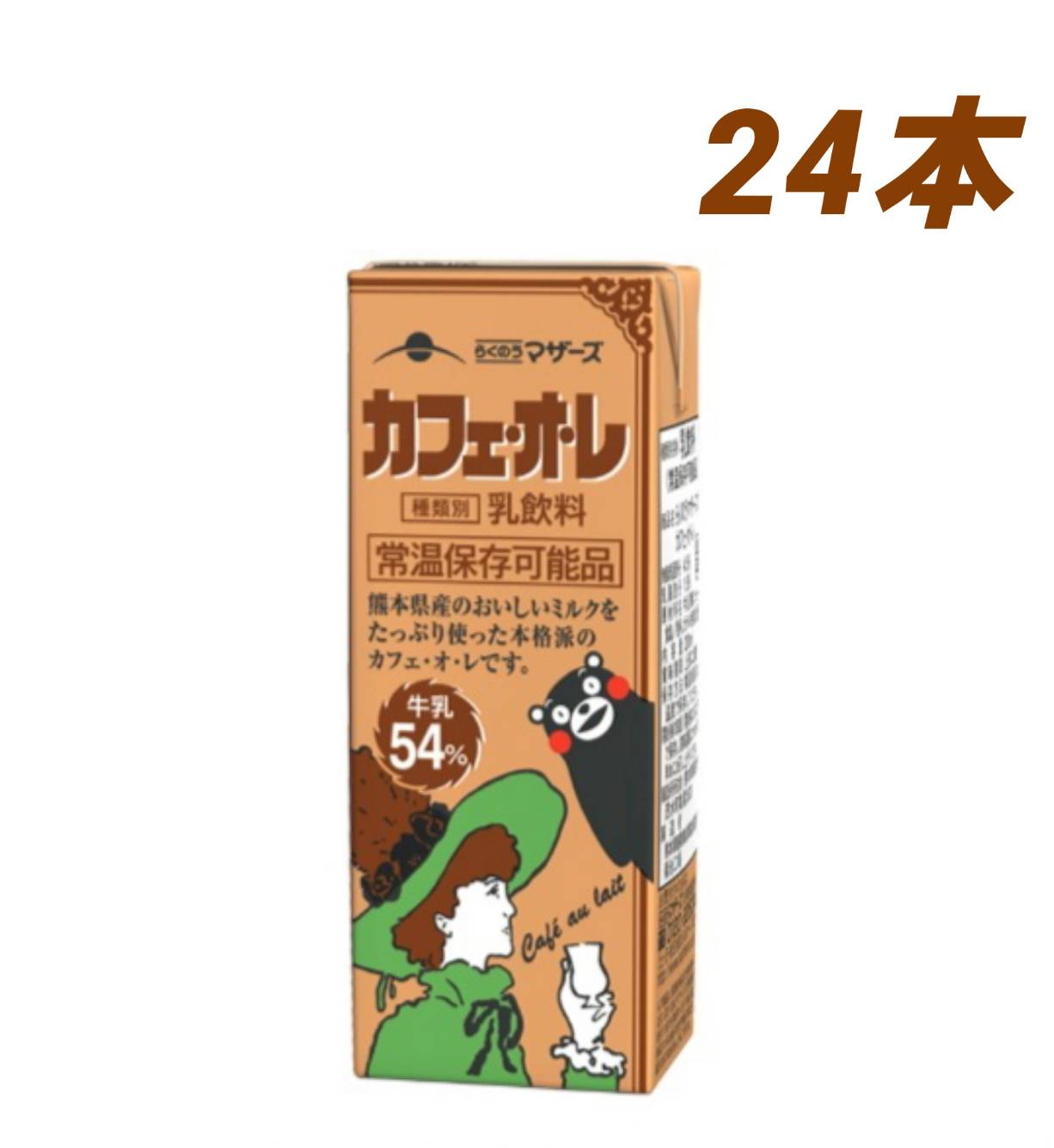 らくのうマザーズ ケース販売 カフェ・オ・レ 200ml×24本 常温保存 くまモン ミルクをたっぷり(54%)使用 ロングライフ