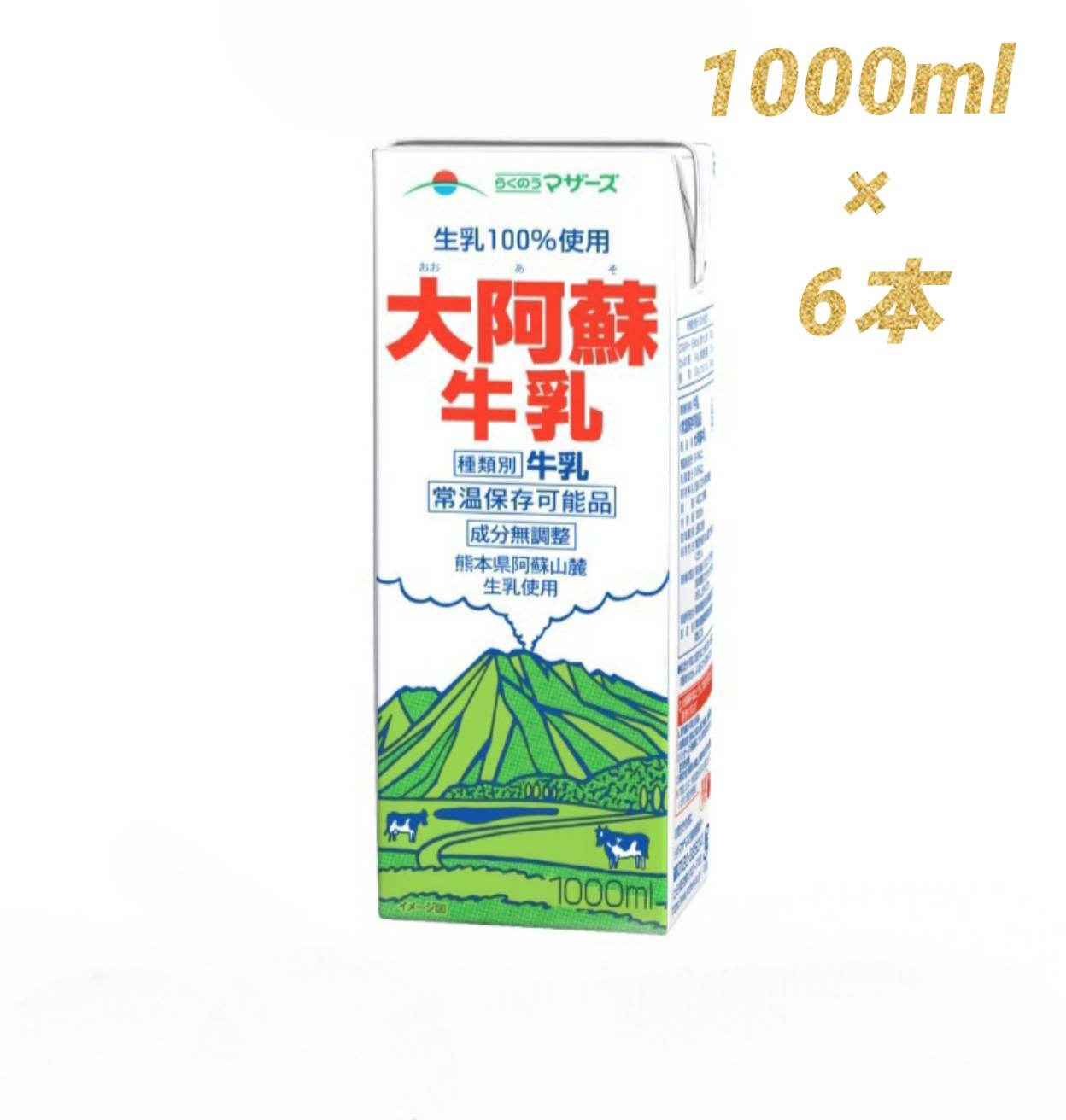 らくのうマザーズ 大阿蘇牛乳 1000ml×6本 常温保存 成分無調整牛乳 生乳100% ケース販売 ロングライフ 1リットル