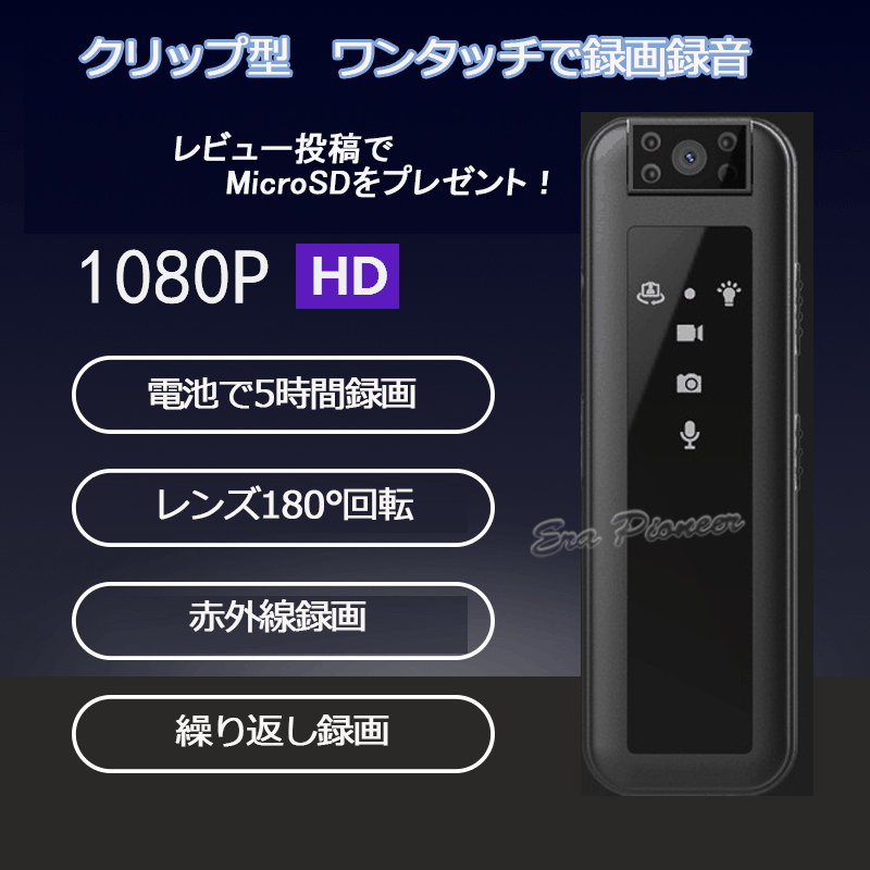 | 機能 | ワンタッチ録画、録音、写真撮影、PCカメラ、USBメモリ、ボイスレコーダー、5時間録画、不可視赤外線録画 |