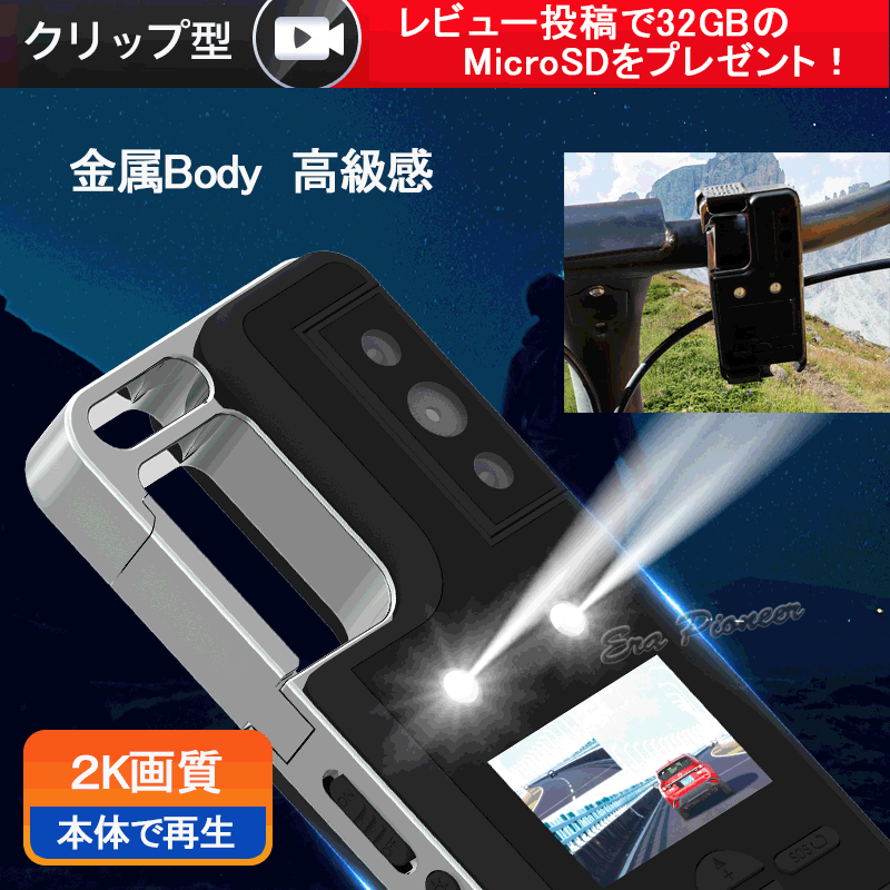 マグネット機能あり、クリップ取り外し可能、自転車取付ベルト付属、レンズ180°回転できます!