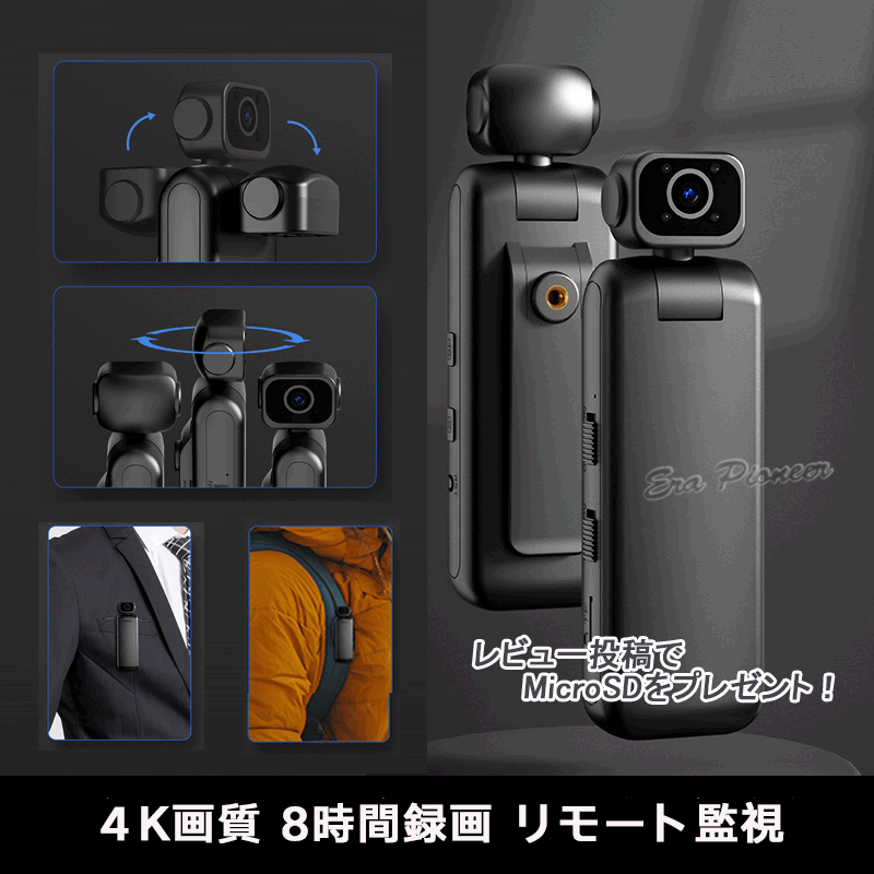 4K画質!防犯カメラ 小型 ビデオカメラ ドライブレコーダー Wifiカメラ クリップ型 8時間録画 録音 写真 内蔵電池 256GB対応