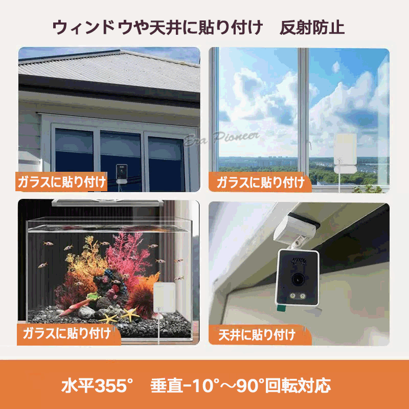 防犯カメラ ガラス越し撮影 反射なし WiFi AP 窓用カメラ 水槽観察用カメラ 魚観察 2K画質 赤外線録画