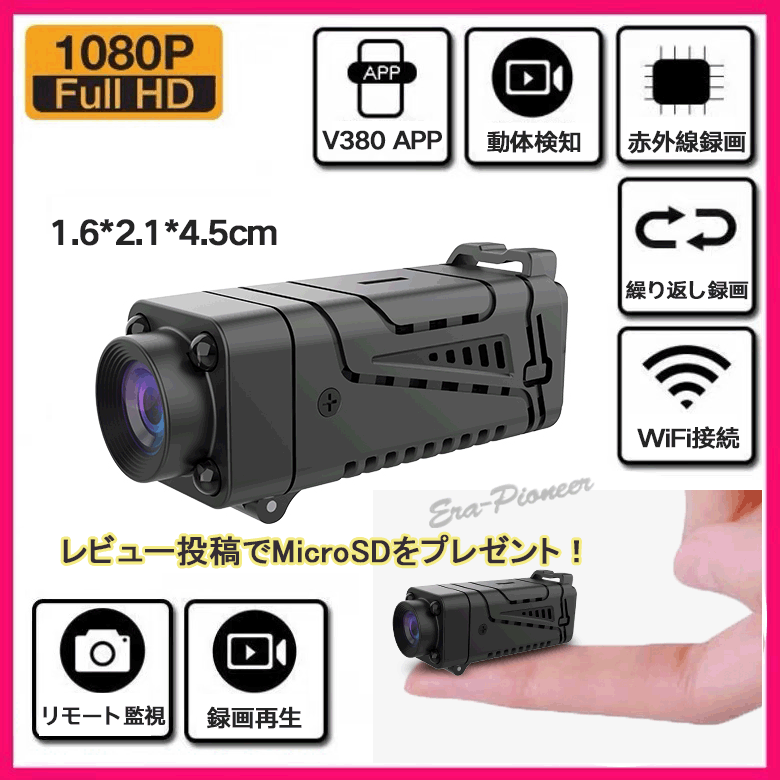 V380 超小型防犯カメラ ワイヤレス 監視カメラ SDカード録画 wifi 動体検知 不可視赤外線 小型 AP機能