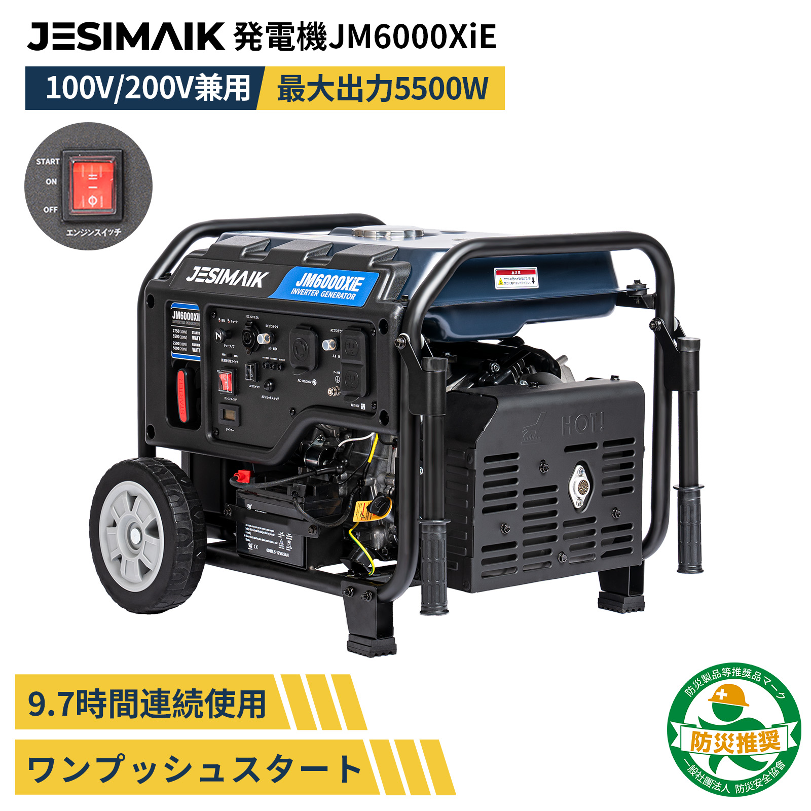 1/1から発送遅延 防災 インバーター発電機 単相100V 200V発電機 5.5kVA 高出力 14.5L大容量タンク 9.7h運転 一発始動 業務用 始動確認済み JESIMAIK JM6000XiE