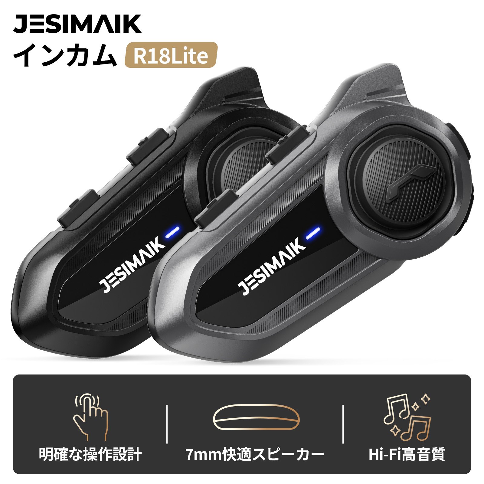 「2台セット」 JESIMAIK バイク インカム R18Lite 2人同時通話 通信距離1500m Bluetooth5.1 HiFi高音質 薄型7mmスピーカー バイク用インカム 爆買