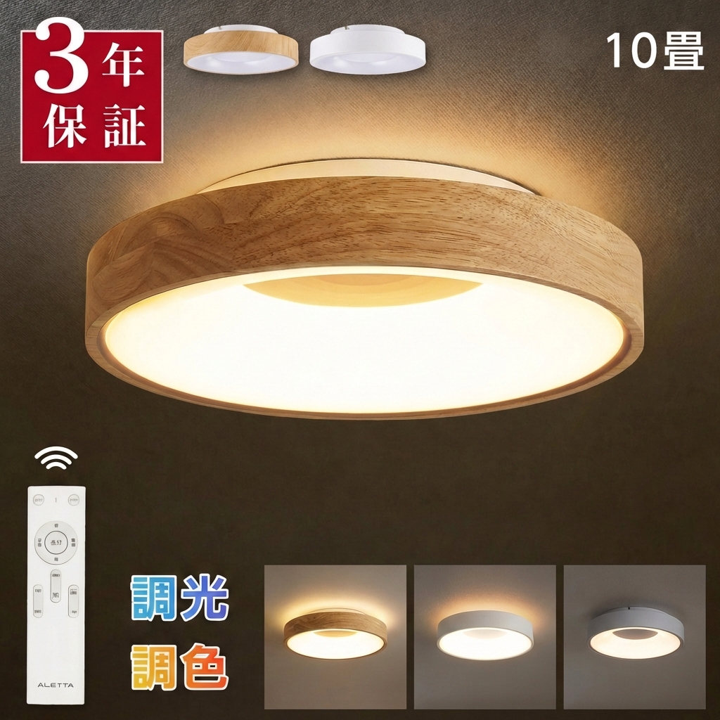 【製品仕様】商品サイズ:約Φ37xH8.5cm / 適用畳数:10畳 / 調光・調色:12段階/消費電力:36W / 材質:ABS+PP
