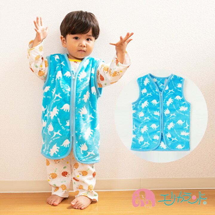 スリーパー かいまき 秋 冬 防寒 子供 ロングポンチョ ロングベスト 男の子用 子供用 キッズ用 ジュニア用 恐竜柄 裏地ボア 新マイクロ 送料無料