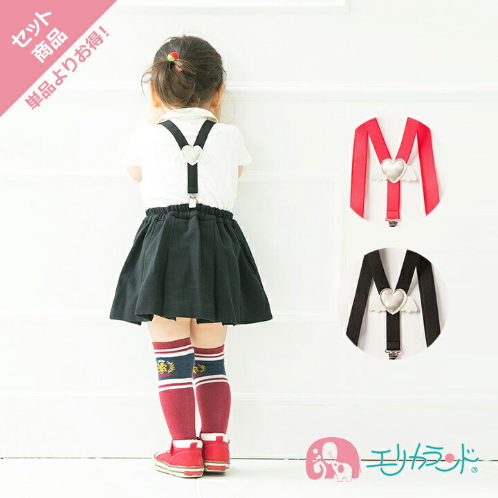 サスペンダー Y型サスペンダー 赤 黒 レッド ブラック ベビー キッズ 子供 女の子 可愛い 天使の羽 天使 日本製 セット販売 組み合わせ自由 送料無料