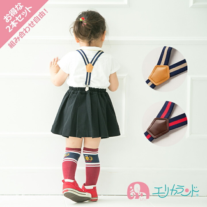 サスペンダー Y型サスペンダー セット ボーダー柄 紺 赤 キナリ 男の子 女の子 ベビー キッズ 子供 お得なセット 組み合わせ自由 送料無料