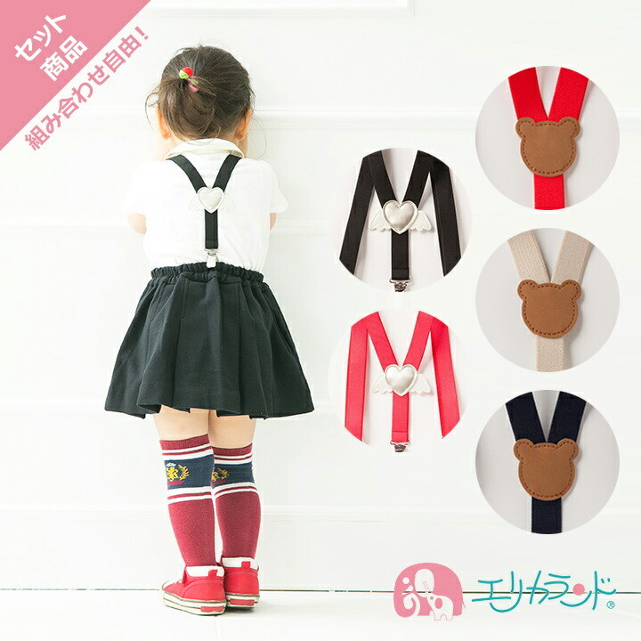 サスペンダー Y型サスペンダー クマちゃん 天使の羽 黒 赤 キナリ 青 ベビー キッズ 子供 可愛い 女の子 男の子 セット商品 日本製 送料無料