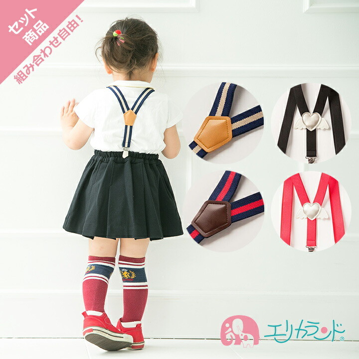 サスペンダー Y型サスペンダー ベビー キッズ 子供 男の子 女の子 ボーダー ハート 黒 赤 紺 キナリ 天使の羽 フォーマル お得なセット 日本製 送料無料
