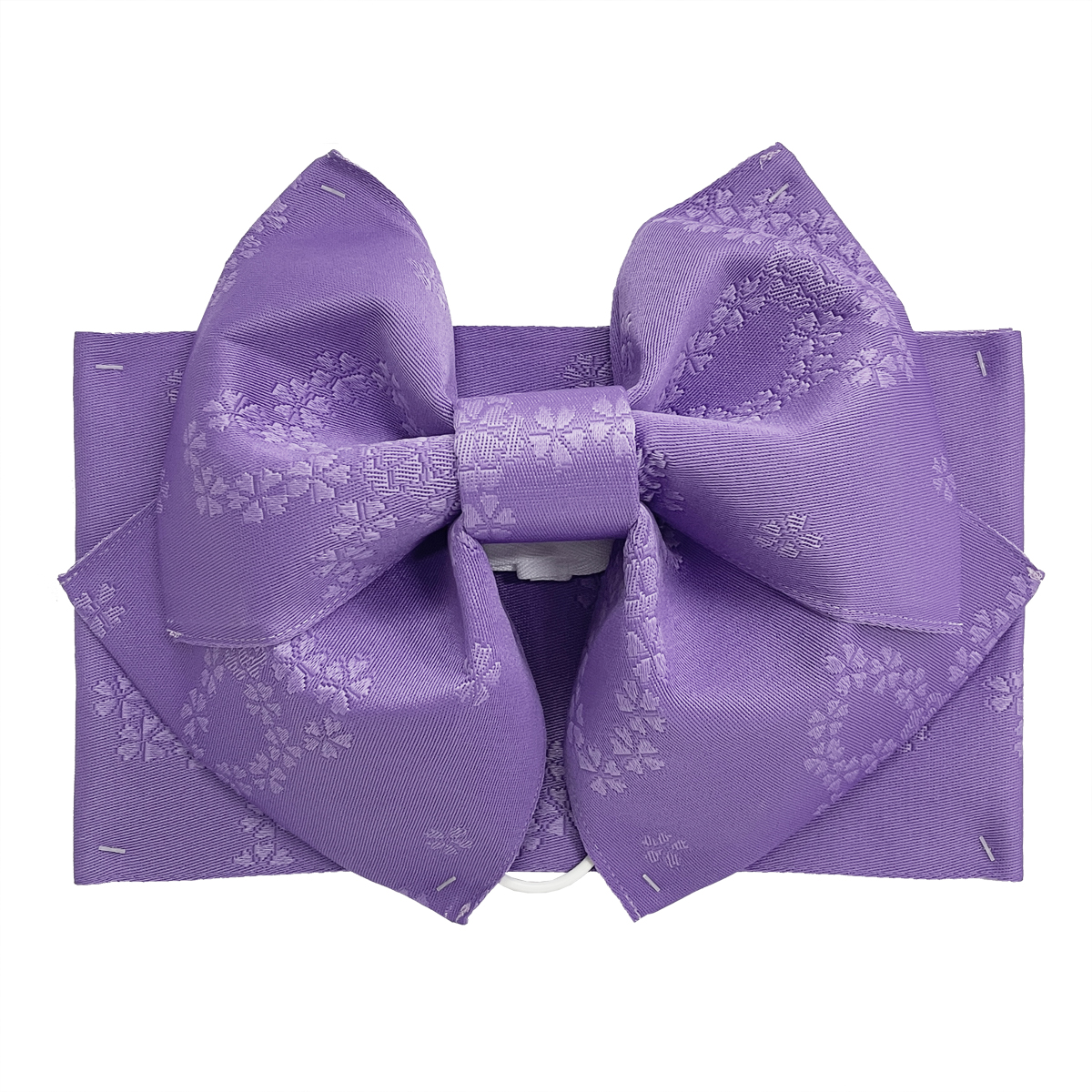 子供 浴衣帯 作り帯 付け帯 No.14 薄紫 江戸紫 花柄 Mサイズ リボン 女の子 在庫処分品 【宅配便】