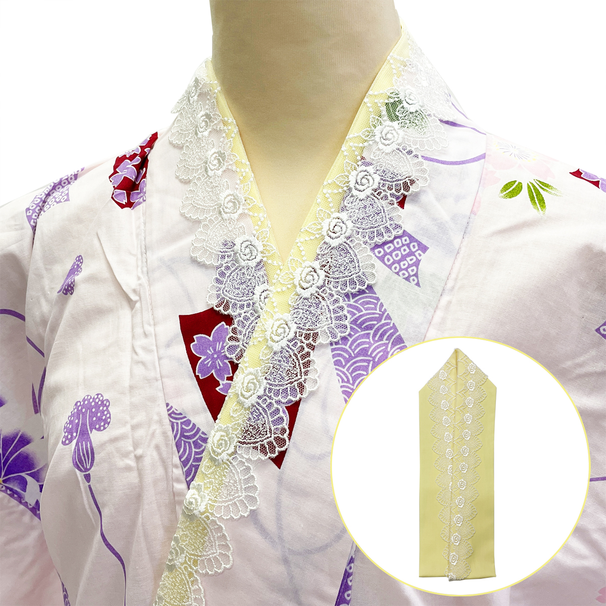 重ね衿 伊達衿 No.24 薄黄色 レース付き 衿止め用ピン付き 浴衣用 小紋用 在庫処分品 【郵便】