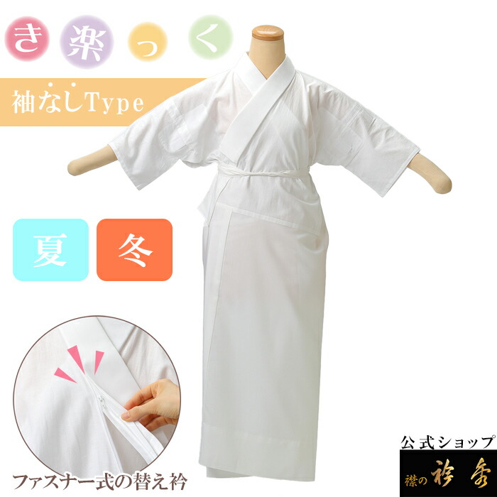 ファスナーは直接肌に当たらない形状で、やわらかいナイロンファスナー(YKK)なのでお身体にもNOストレス。外見からも見えないので一般的なお襦袢と同じように使っていただけます。