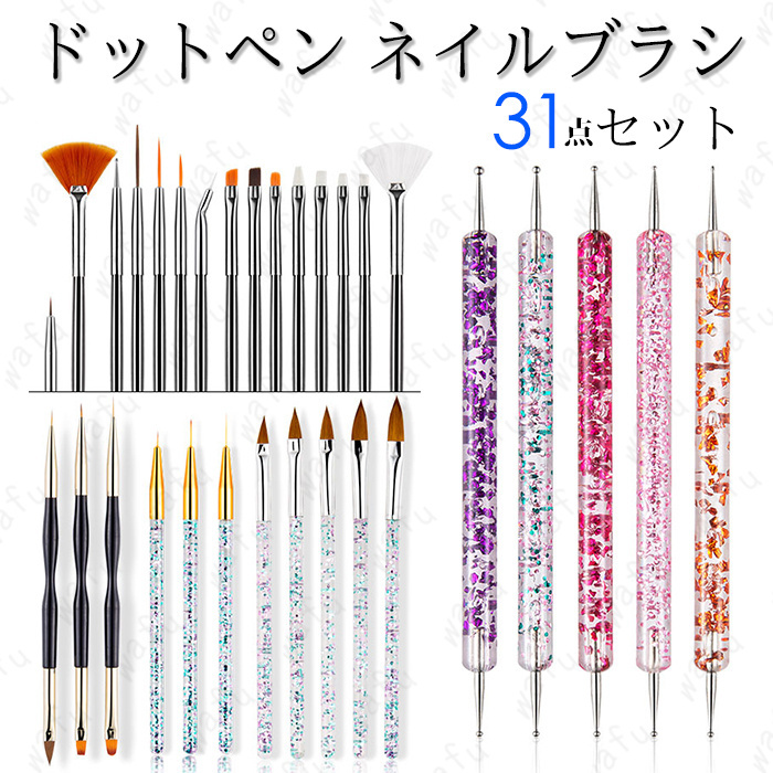 31本セット ネイルブラシ日本国内当日発送 ドット棒 筆 塗りやすい ドットペン ネイル 平筆 ネイルツール 細筆 ジェルネイル ネイル用品 #br142