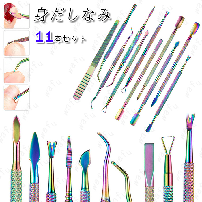 ネイルケア 日本国内当日発送 11点セット 爪垢取り 甘皮処理 ネイル プッシャー 爪リフター 爪やすり ステンレス製 爪の隙間 ごみ取り棒 陥入爪ツール #br168