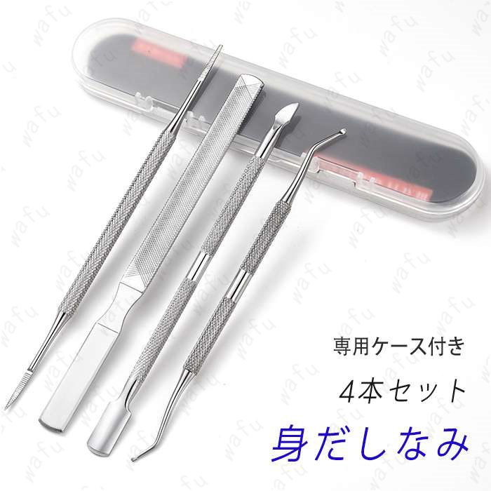 ネイルケア 4点セット 日本国内当日発送 爪垢取り 爪やすり 甘皮処理 ステンレス 陥入爪ツール ネイル プッシャー 爪リフター 爪磨き 巻き爪 #br199
