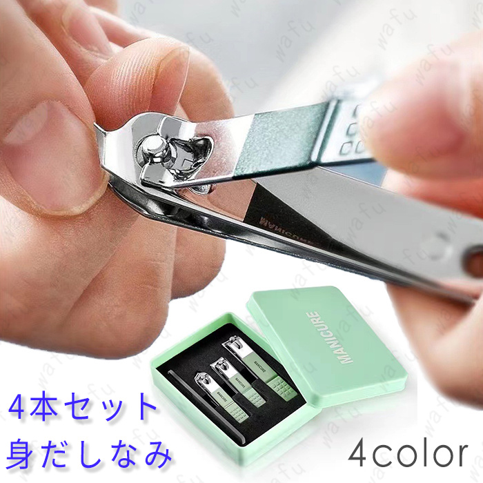 爪切り 4点セット 日本国内当日発送 グルーミングセット 爪やすり ステンレス製 つめきり 飛び散り防止 爪磨き ネイルケア 収納ボックス付き 手足両用 #br220