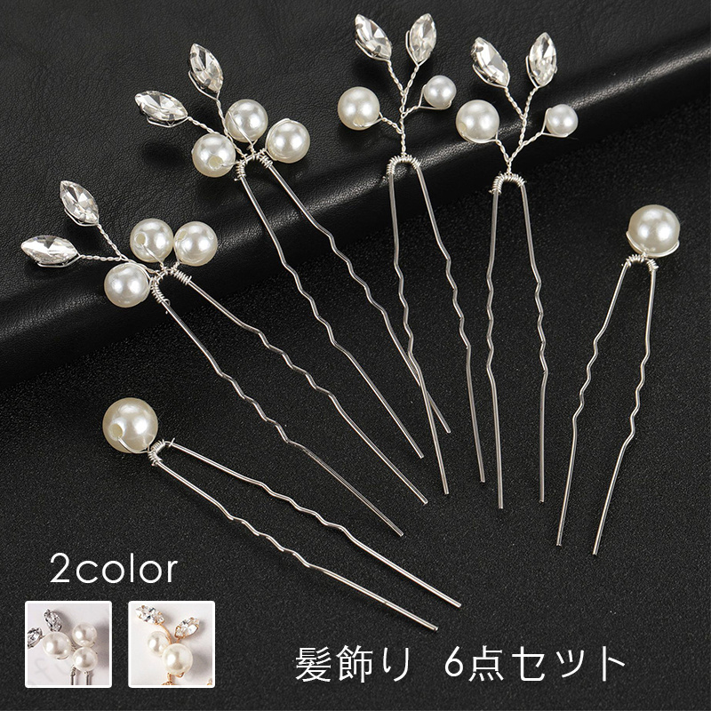 h165#髪飾り 6本セット 当日発送 2color Uピン パール 結婚式 成人式 ラインストーン 浴衣 和装 着物 ヘアアレンジ ウェディング かんざし 卒業式 ヘアピン 振袖