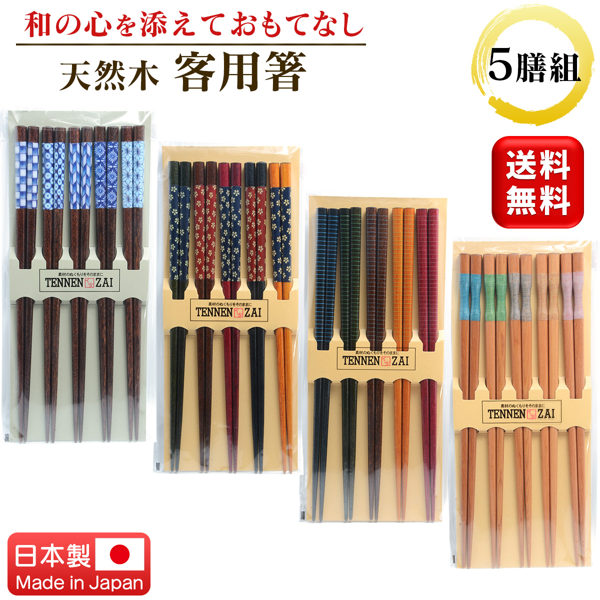 ・おもてなしに最適な天然木製のお箸5膳セット