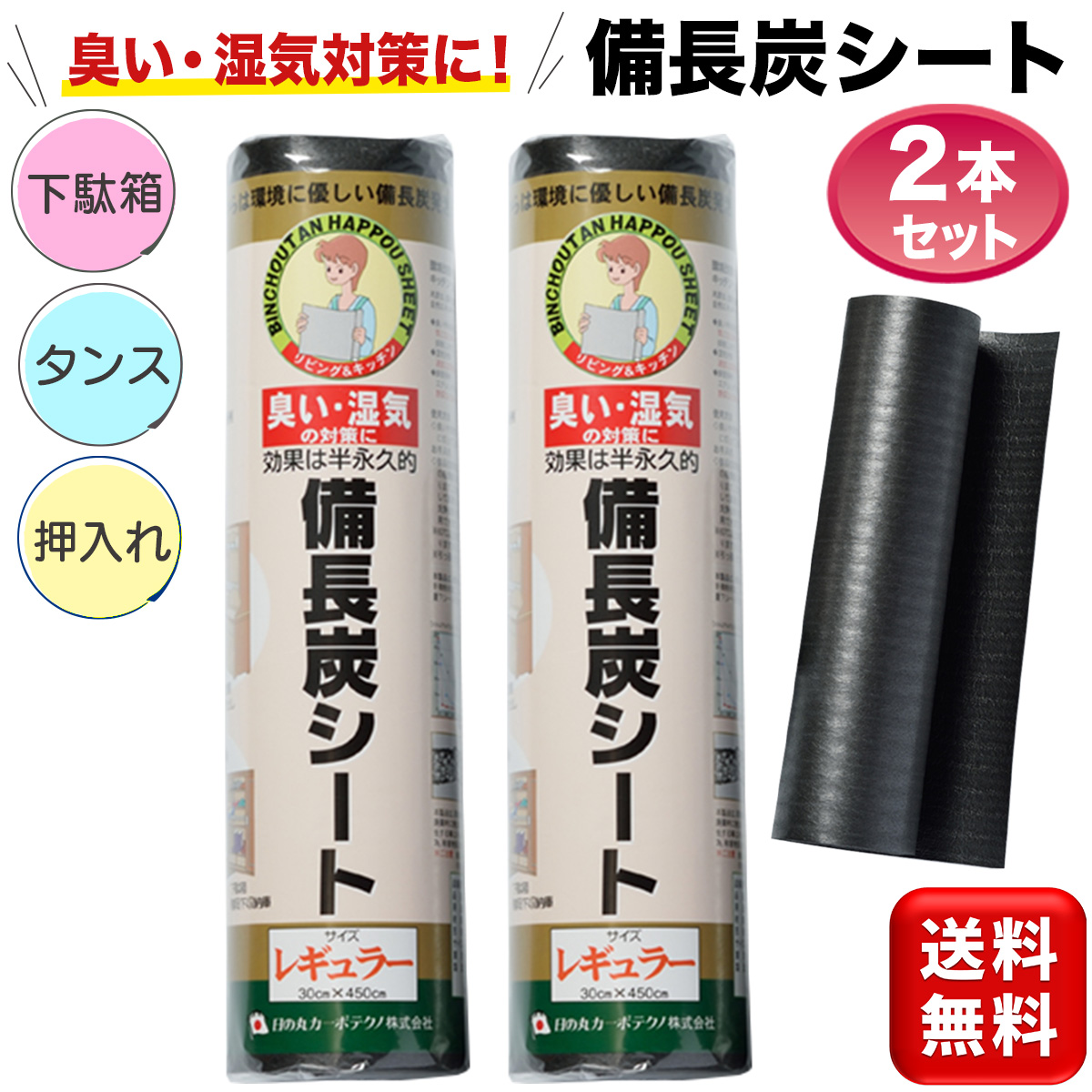 備長炭シート 2本セット 30×450cm キッチン リビング 下駄箱 押入れの臭い 湿気対策シート 防臭 消臭 防湿 カビ防止 防カビ 送料無料