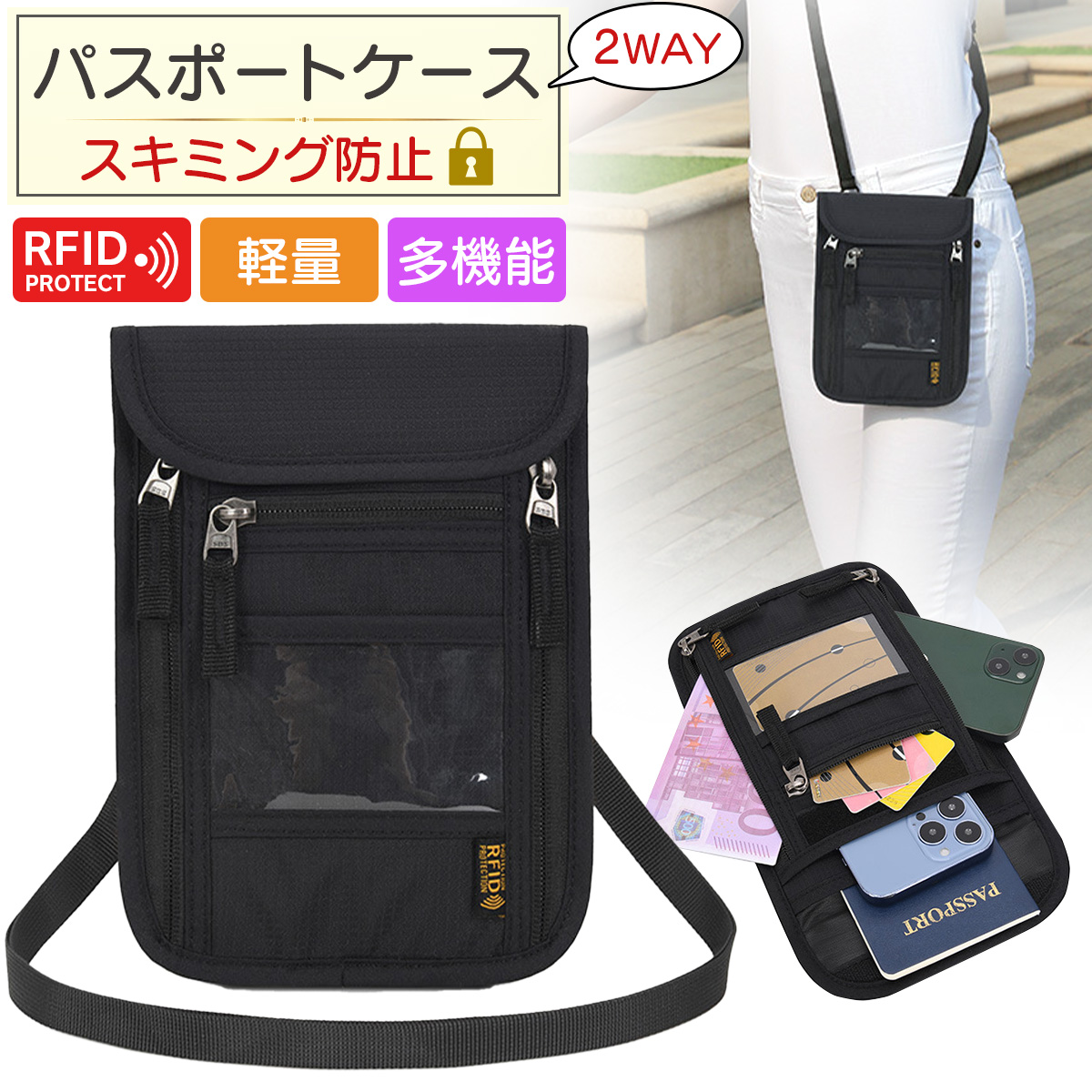 パスポートケース セキュリティポーチ パスポートポーチ スキミング防止 多機能 首下げ 薄型 軽量 軽い セキュリティケース 海外旅行 防水