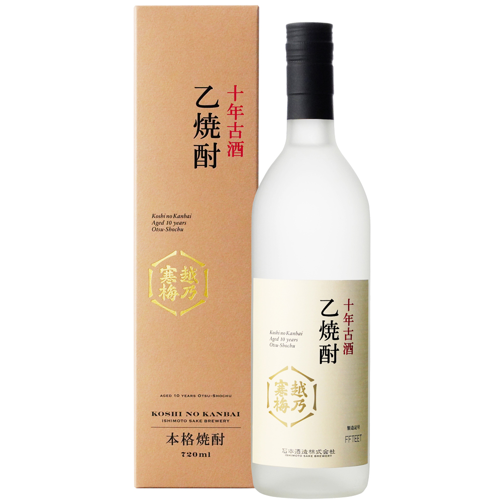 「越乃寒梅」の兵庫県産特A山田錦を使った吟醸粕を主原料とし再醗酵させ減圧 蒸留後、10年間熟成させて完成した粕取り焼酎で、蒸米を連想させる香りと味に富み、 まったりとした味わいの本格焼酎です。アルコール度数40.2%。<蔵元さまより>